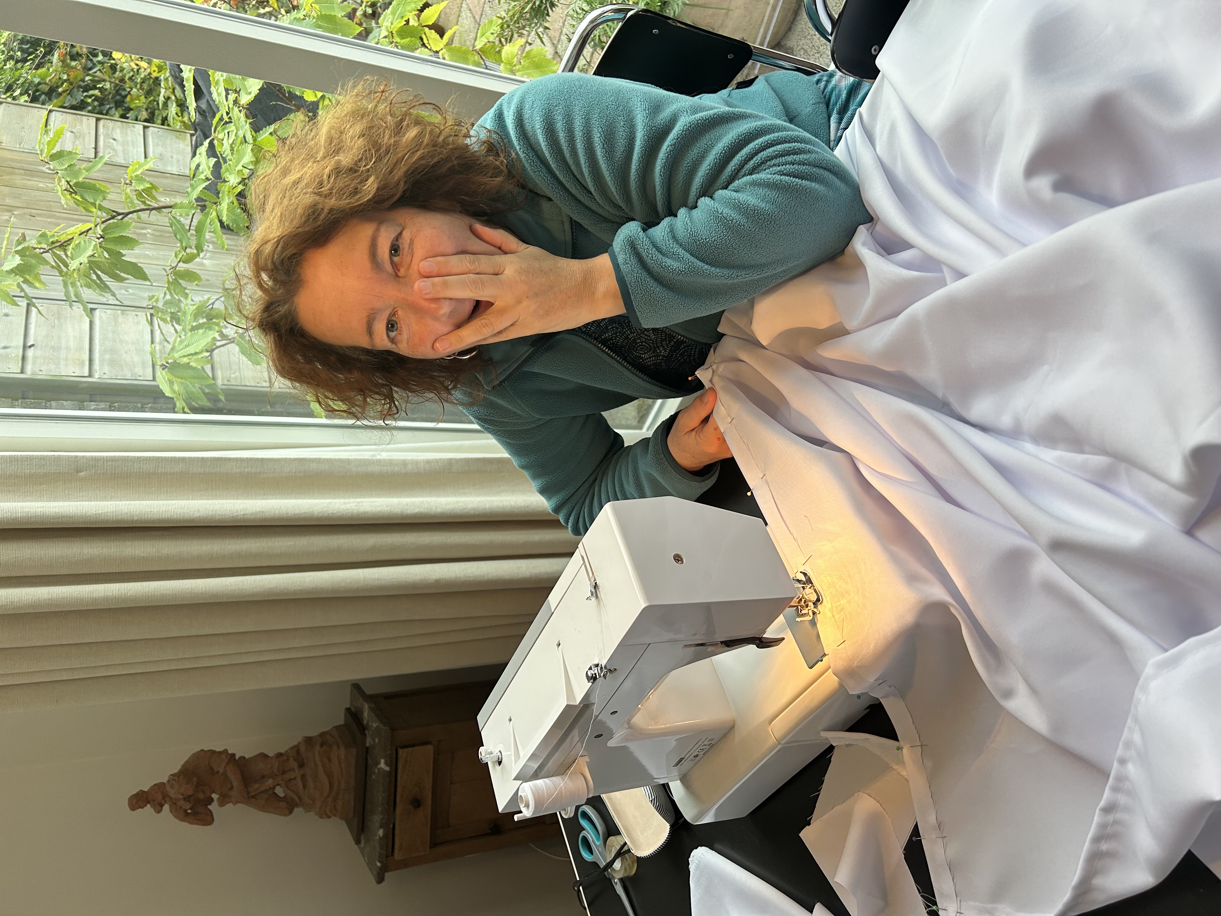 Op 16 en 17 november maak ik mijn debuut op de Nationale Kunstdagen in Gorinchem. Ik ben onderdeel van de Extostand. Vandaag kreeg ik mijn eigen standnummer door: 96N. Ik sta op een hoek en ben daar super blij mee. Omdat ik vooral veel klein werk presenteer en je niet in de wanden mag spijkeren maak ik een hoge smalle tafel om het werk op te presenteren. Daar moet wel een mooi kleed op. Dus aan de slag met de naaimachine.